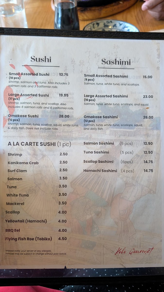 Guests often come here to savor carefully prepared nigiri, assorted sashimi, or the chef’s omakase, which presents an evolving experience of seasonal flavors. Casual yet attentive, the menu includes familiar favorites like the Spider Roll and Hamachi Roll alongside vegetable tempura options and delicate large assorted sushi platters. These dishes complement the calm atmosphere, making each meal feel like a small, satisfying ritual.